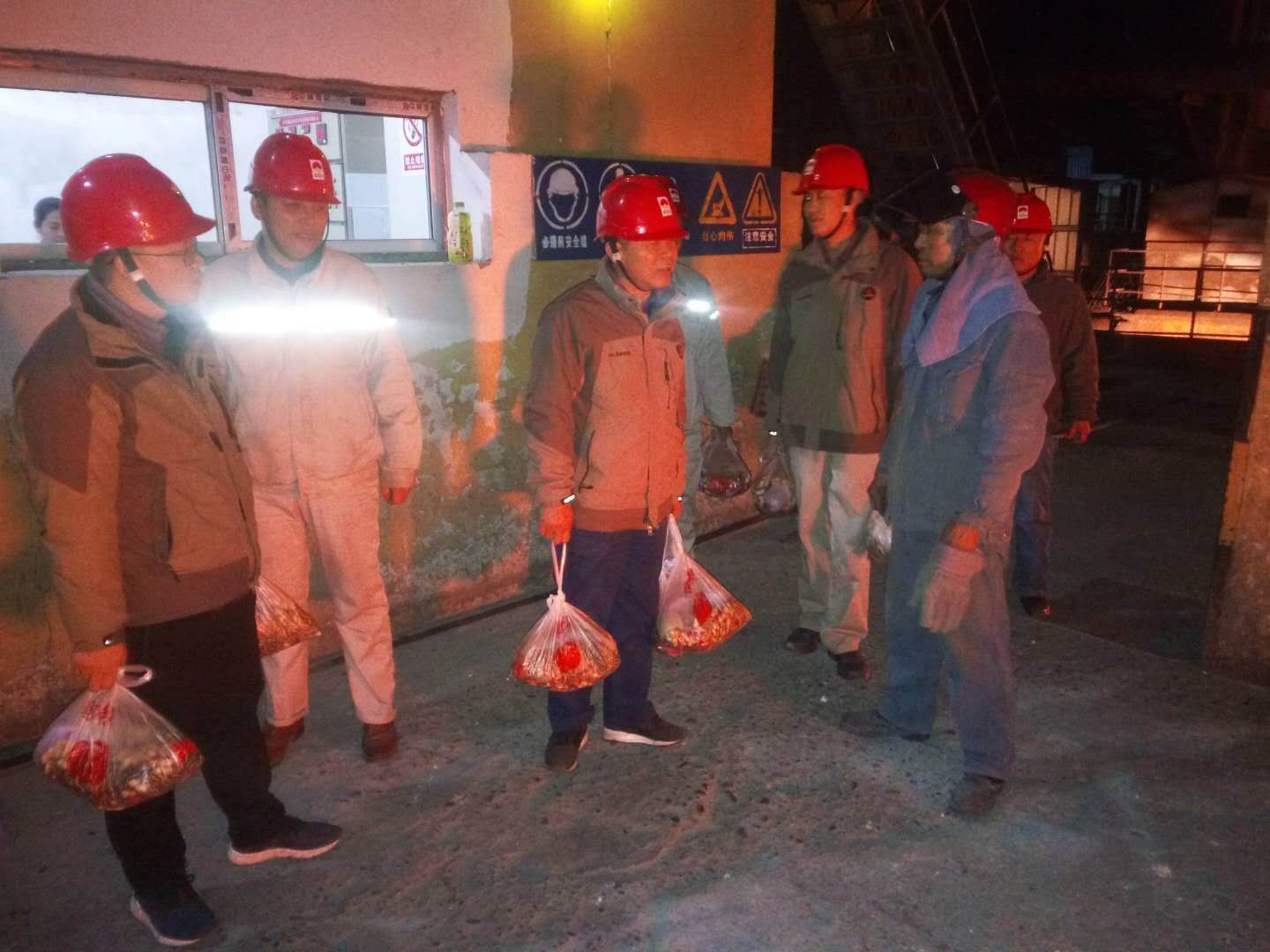 當許多人坐在電視機前,吃著團圓飯,看著春節晚會時,有這么一群人仍然堅守在崗位上,他們就是資源再生公司的一線工人,舍小家保大家是他們愛崗敬業的見證。除夕夜22:00左右,資源再生公司各級管理人員匯聚在一起,帶著禮品,深入生產一線,為員工送去了節日的問候,感謝大家在節日期間恪盡職守、任勞任怨、無私奉獻,希望大家在繁忙的工作中注意身體健康,并囑咐堅守崗位的職工們一定要確保自身安全及設備、工藝、質量的安全穩定運行,也祝資源再生公司的全體職工及家屬新年快樂。