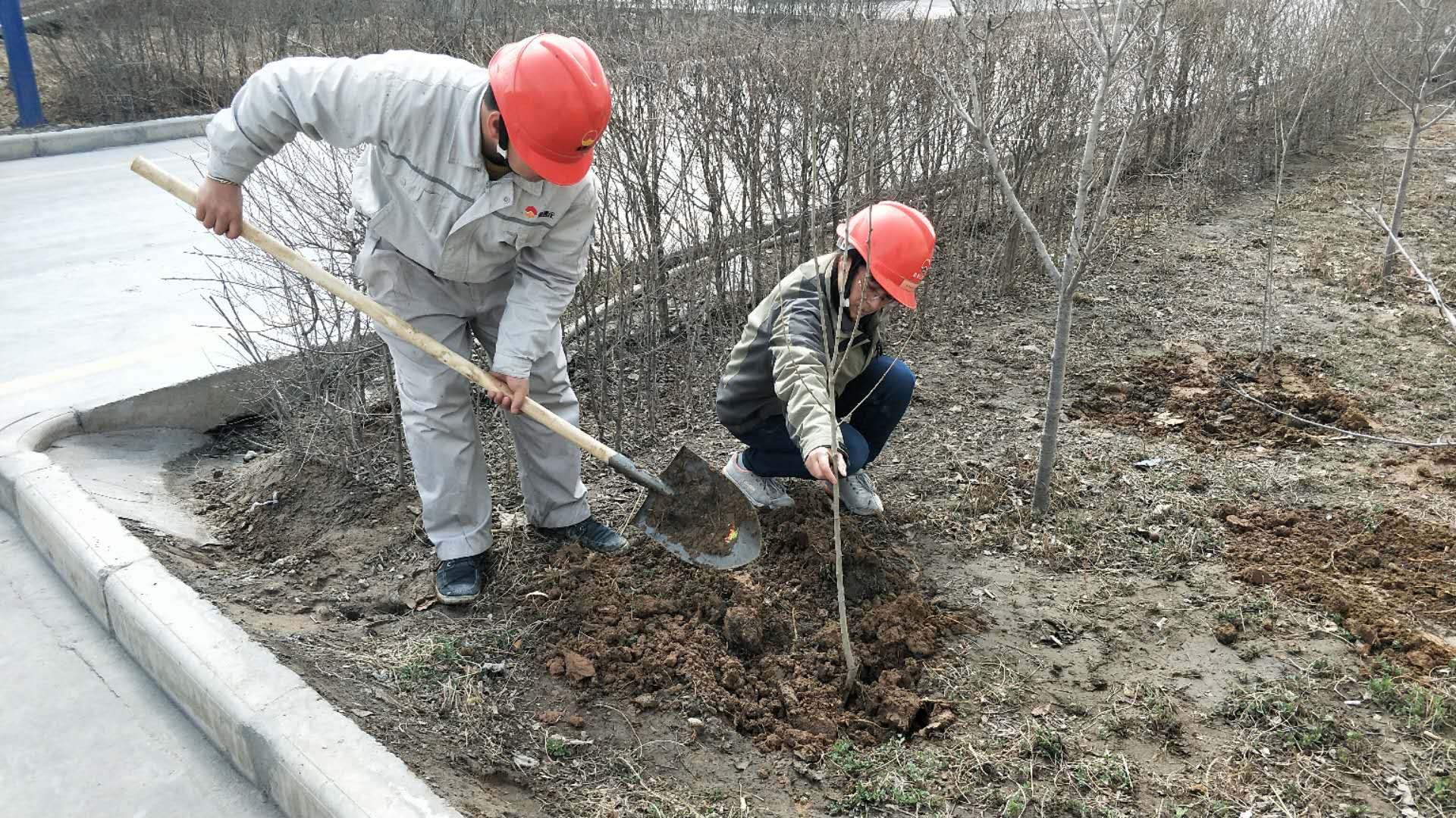 植樹現場,員工們個個精神抖擻,兩人一組,有的扶樹、有的填土、有的澆水,處處都是火熱的勞動場景。期間,大家也融洽的攀談起往昔勞作時的過往,相互交流經驗,培養感情。在公司員工的共同努力下,種植活動圓滿完成,一片片新栽的樹苗錯落有致、迎風挺立,為春天的資源循環增添了一抹新綠,展示著無盡的生機與活力。