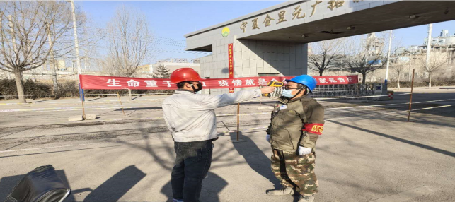 園區里,他們甘愿與離別為伴,與同事為伍,全力以赴,做好疫情防控阻擊戰。把一切不安全因素阻止在門外,自己卻享受在曠野之中的“大漠狐煙直,長河落日圓”。