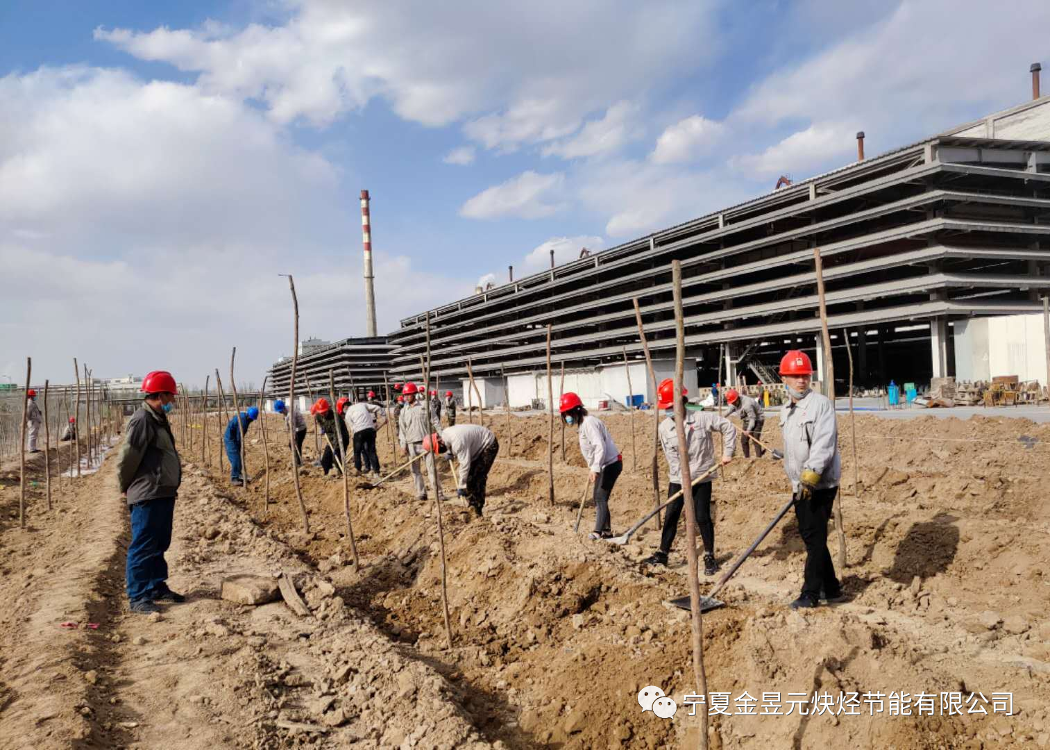 植樹現場,干部與職工齊心協力,呈現出一派熱鬧繁忙的景象。經過一番緊張的勞動,幾百棵新栽下的樹苗昂然挺立,為春光明媚的四月增添了一抹盎然的綠意。