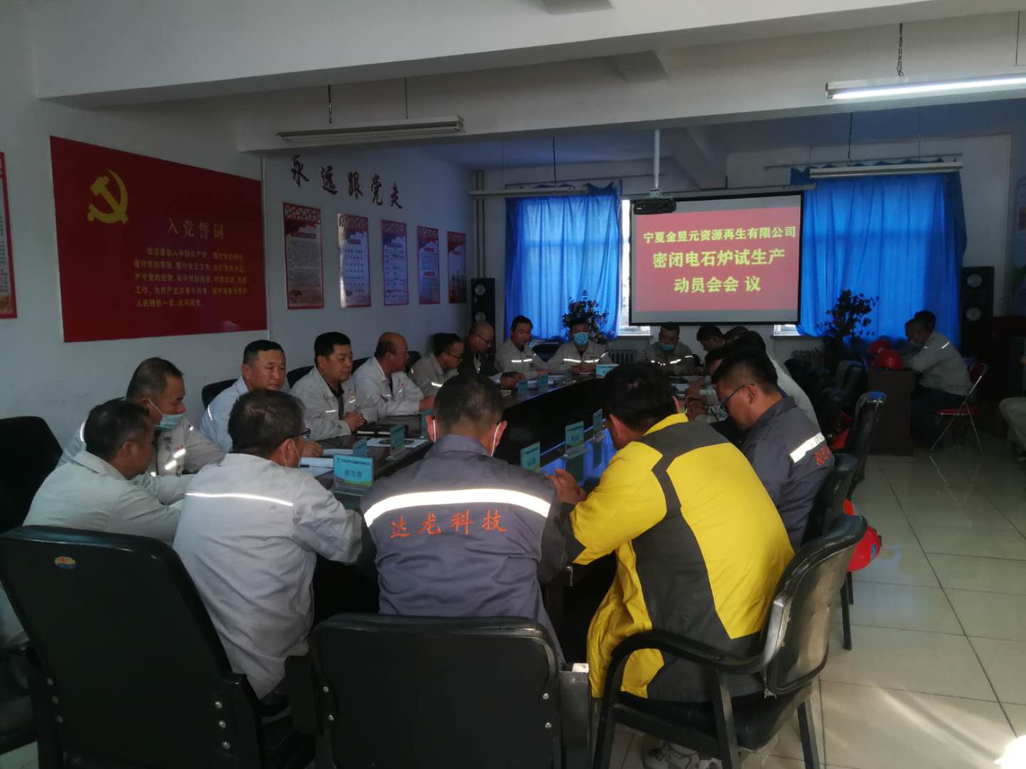 10月14日下午16:00時(shí),資源再生公司召開電石爐系統(tǒng)試生產(chǎn)動(dòng)員會(huì)議。公司電石系統(tǒng)技術(shù)員以上管理人員、外協(xié)施工單位所有負(fù)責(zé)人參加此次會(huì)議。會(huì)議首先由安全總監(jiān)鄒永清組織對(duì)電石爐試運(yùn)行期間安全注意事項(xiàng)進(jìn)行學(xué)習(xí),然后由副總經(jīng)理雷銳組織學(xué)習(xí)密閉電石爐試運(yùn)行開車方案,副總經(jīng)理岳廣平對(duì)密閉電石爐開車時(shí)的安全做進(jìn)一步的要求后,由資源再生公司總經(jīng)理王鐵鎖做密閉電石爐試生產(chǎn)動(dòng)員。