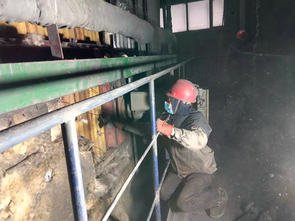在檢修現(xiàn)場(chǎng),隨處可見檢修人員忙碌的身影,他們不斷的變換著動(dòng)作,靈活地使用各種型號(hào)的工器具。檢修過程中每一個(gè)起吊都小心翼翼,每一個(gè)動(dòng)作都井然有序。只看見熱力裝置長(zhǎng)毛文軒從爐膛狹小的人孔鉆進(jìn)爐膛,借助二十多米高的腳手架,對(duì)水冷壁管的磨損情況進(jìn)行細(xì)致檢查,對(duì)澆注料、燃燒器、過熱器等受損情況也進(jìn)行了逐一查看。他帶領(lǐng)熱力裝置全員由點(diǎn)到面,由里到外、全方位監(jiān)管督導(dǎo),有效提升檢修質(zhì)量。