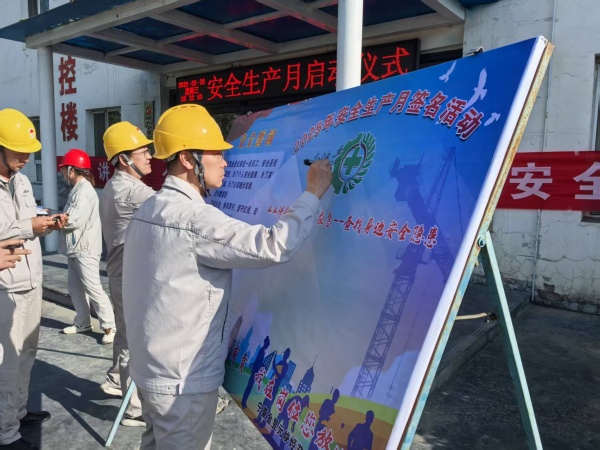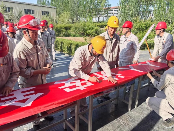 2025年5月28日上午,炔烴節能公司組織開展了“安全生產月”活動啟動儀式。啟動儀式上,首先由各裝置長、勞務外包單位負責人依次做表態發言;其次,安全總監帶領所有人員進行“安全生產月”宣誓;總經理尚繼榮同志進行啟動儀式發言,對公司安全生產月活動做出安排部署;最后,由總經理帶領每一位員工在安全承諾板上依次進行簽名,并由安全科組織發放安全生產宣傳材料。公司所有員工及勞務外包單位人員承諾:“忠誠企業,恪盡職守,堅守紅線,珍愛生命,創建“平安企業”!并且堅決做到:牢記安全第一,遵守規章制度,履行安全職責,不違章,不冒險,不留隱患,不出事故。他們將以實行行動,爭做安全合格員工,確保生產安全,讓企業放心,讓家人安心。”