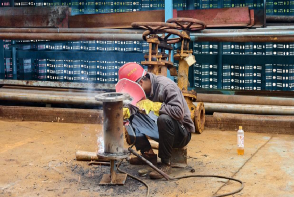 除了檢修泵,張強的焊接技術更是裝置里出了名的“一絕”。檢修期間,維修班的院子里,焊槍迸發的火花格外耀眼。維修班班長張強正半蹲在設備旁,專注地焊接一臺老舊閥門,隨著“滋滋”的聲響,焊槍穩穩落在密封面上,張強手腕微轉,焊錫均勻地鋪滿磨損處,熔池大小始終控制得恰到好處。焊接到關鍵接口時,他屏住呼吸,眼神緊緊鎖定焊點,生怕一絲偏差影響密封效果。火星在他手邊飛濺,他卻始終盯著熔池,直到最后一道焊縫完成。經過壓力測試,焊縫完全符合標準,沒有一絲滲漏。“強哥的焊口,就是質量的‘保證書’。”設備技術員高云翔提起這事,至今仍贊不絕口。