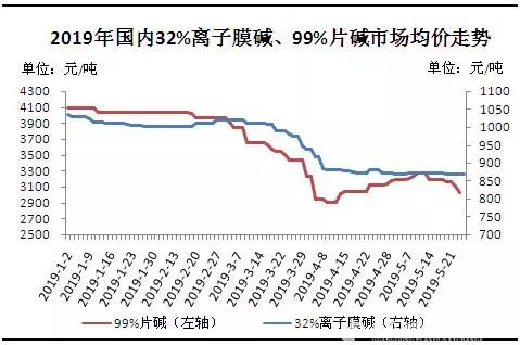 圖1 2019年國內(nèi)燒堿市場價格走勢