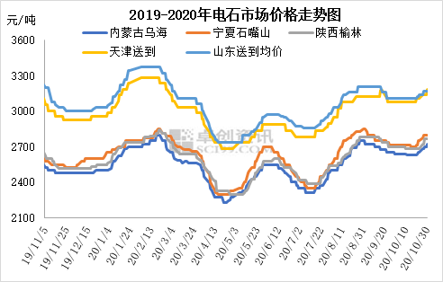 華北地區PVC企業電石到貨量前多后少,前期到貨不均衡,部分待卸車數量較高,部分受運輸制約國慶期間下降明顯。但10月下旬,各地到貨均出現減少,貨源略緊,采購價連續上漲。目前各地PVC企業電石到家價格為:山東優級品主流接收價3080-3260元/噸,計劃明日上調,天津大沽化到廠價3160元/噸(;嚕;河北唐山三友300L/KG接收價3100元/噸;山西榆社送到價格2970元/噸。
